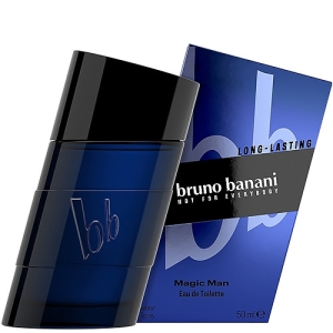 Bruno Banani Magic Man Eau De Toilette - a varázslatos kék üvegben egy friss, fás-borostyán illat rejtőzik. Illatjegyeit a szerecsendióval nyitja, guatemalai kardamommal és feketeborssal, némi füstös árnyalattal. A szívillatában a kakaófa aromáit hozza, a ciklámen, a bársonyvirág és a pekándió elegyével. Az alapbjegyében a fás akkordok állnak, pacsulival és borostyánnal. Bruno Banani Magic Man parfümje tökéletesen jellemzi a férfit, aki tudja, mit akar. Az egyedi, ferde üvegeiről ismert Bruno Banani ütős férfi parfümje, a Magic Man ízig-vérig pasiillat, azoknak ajánljuk, akik nem félnek megmutatni macsó oldalukat.