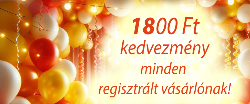 Regisztráltál már? Ha november 10. és 16. között fiókodba belépve vásárolsz, 18. szülinapunk alkalmából azonnali 1800 Ft kedvezményben részesülsz.
