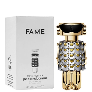 Engedd, hogy elvarázsoljon a Paco Rabanne Fame Eau De Parfum! A parfüm illata olyan, mint a hírnév, amit maga mögött hagy - erős, felejthetetlen és mindenhol jelen van. Játékos. Merész. Érzéki illat. Tiszta jázminból, zamatos mangóból és érzéki, krémes tömjénből készült. A Paco Rabanne Fame Eau De Parfum a virágos-fás illatcsalád csodás tagja, az illatcsalád letisztult, nőies jegyei kihangsúlyozzák viselője egyedi személyiségét. A parfüm legelső illatjegyei az érzékiességet és nőiességet sugallják, majd ahogy telik az idő, egyre mélyebb és gazdagabb illatjegyek bontakoznak ki, melyekkel még inkább kiemelheted egyéniségedet. Fedezd fel Te is a Paco Rabanne Fame Eau De Parfum világát, és engedd, hogy a magabiztosság és nőiesség illata körbeöleljen.